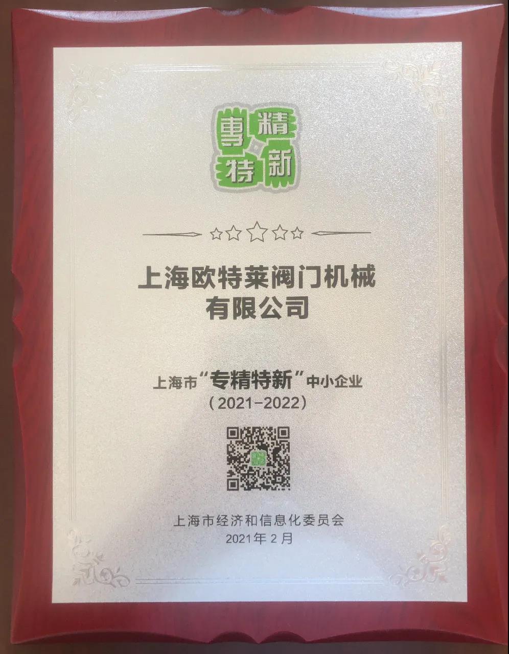 上海歐特萊閥門榮獲上海市專精特新企業(yè)及英國(guó)WRAS認(rèn)證!